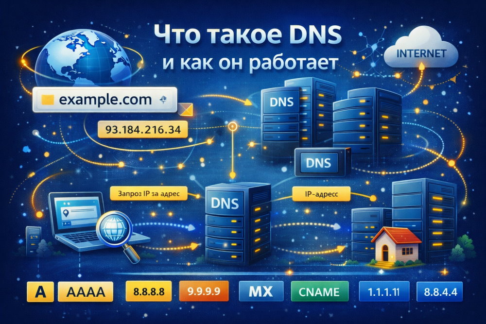 DNS — это система, которая переводит доменное имя в IP-адрес сервера.